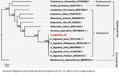 Se informa sobre la primera evidencia confirmada mediante código de barras de ADN de la presencia en los Estados Unidos de A. biguttula (Hemiptera: Cicadellidae). La confirmación molecular estuvo...