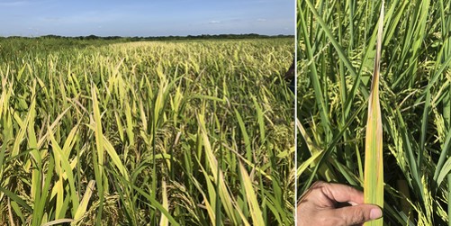 Se observó tizón foliar en arroz, con una incidencia del 30 al 40 por ciento, en Guárico, Venezuela. Las muestras se caracterizaron mediante morfología, análisis moleculares y pruebas de patogenicidad, que indicaron a P. ananatis y P. stewartii como los agentes causales. Este es el primer reporte de P. ananatis y P. stewartii asociadas con el tizón foliar bacteriano del arroz en Venezuela y el primer informe de P. stewartii en arroz en el continente americano.