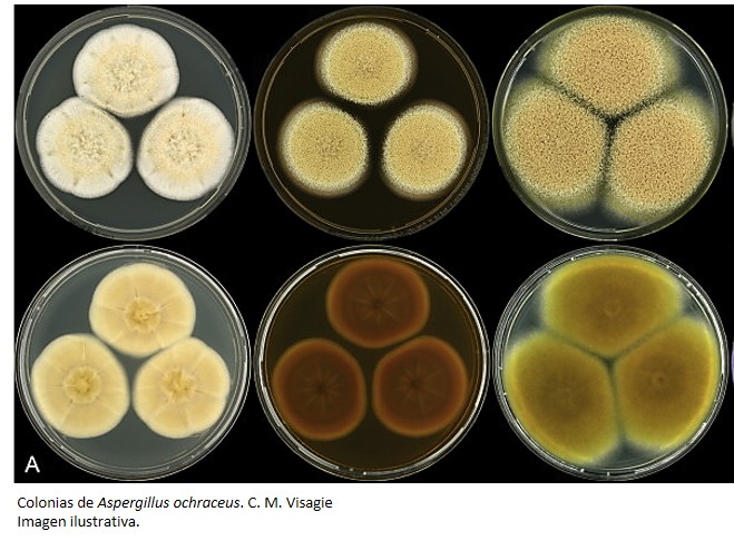 Se observaron papas con manchas oscuras y secas en la cáscara, dichas papa por dentro presentaban cavidades con micelio. Las observaciones culturales, morfológicas, la secuenciación de las regiones génicas y las pruebas de patogenicidad mostraron que la cepa aislada correspondía a Aspergillus ochraceus. Este es el primer reporte de A. ochraceus atacando tubérculos de papa.