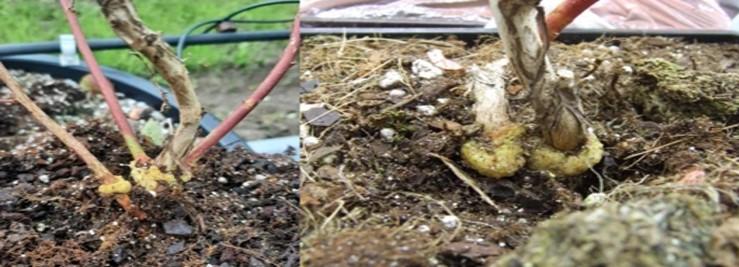 Se observaron agallas de la corona en plantas de arándano alto (Vaccinium corymbosum) en Serbia. Se obtuvieron siete cepas bacterianas que fueron analizadas por sus características morfológicas, bioquímicas y por diferentes pruebas moleculares. Con base en los resultados obtenidos se propone una nueva especie: Agrobacterium vacciniicorymbosi sp. nov. Este es el primer reporte de Agrobacterium vacciniicorymbosi sp. nov. que causa agallas de la corona en arándano alto en Serbia.