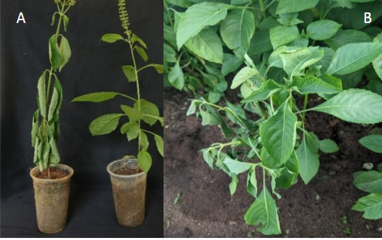 Se observaron plantas de albahaca (Ocimum gratissimum) marchitas cerca de cultivos de tomate infectados con marchitez bacteriana. Muestras sintomáticas fueron recolectadas y se analizaron utilizando varios métodos moleculares. Concluyen que el agente causal es el filotipo I de Ralstonia pseudosolanacearum. Este es el primer reporte de R. pseudosolanacearum que causa marchitez bacteriana en O. gratissimum en Benín y en el mundo.