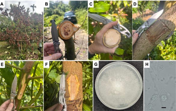 Se investigó la presencia de marchitez del laurel en huertos comerciales de aguacate en Taiwán. Se extrajeron muestras de árboles que exhibían síntomas típicos del marchitamiento del laurel. Todas las muestras produjeron aislados morfológicamente consistentes con Harringtonia lauricola. La identificación molecular y las pruebas de patogenicidad corraboraron al patógeno. Este estudio marca el primer reporte confirmado de marchitez del laurel en Taiwán.