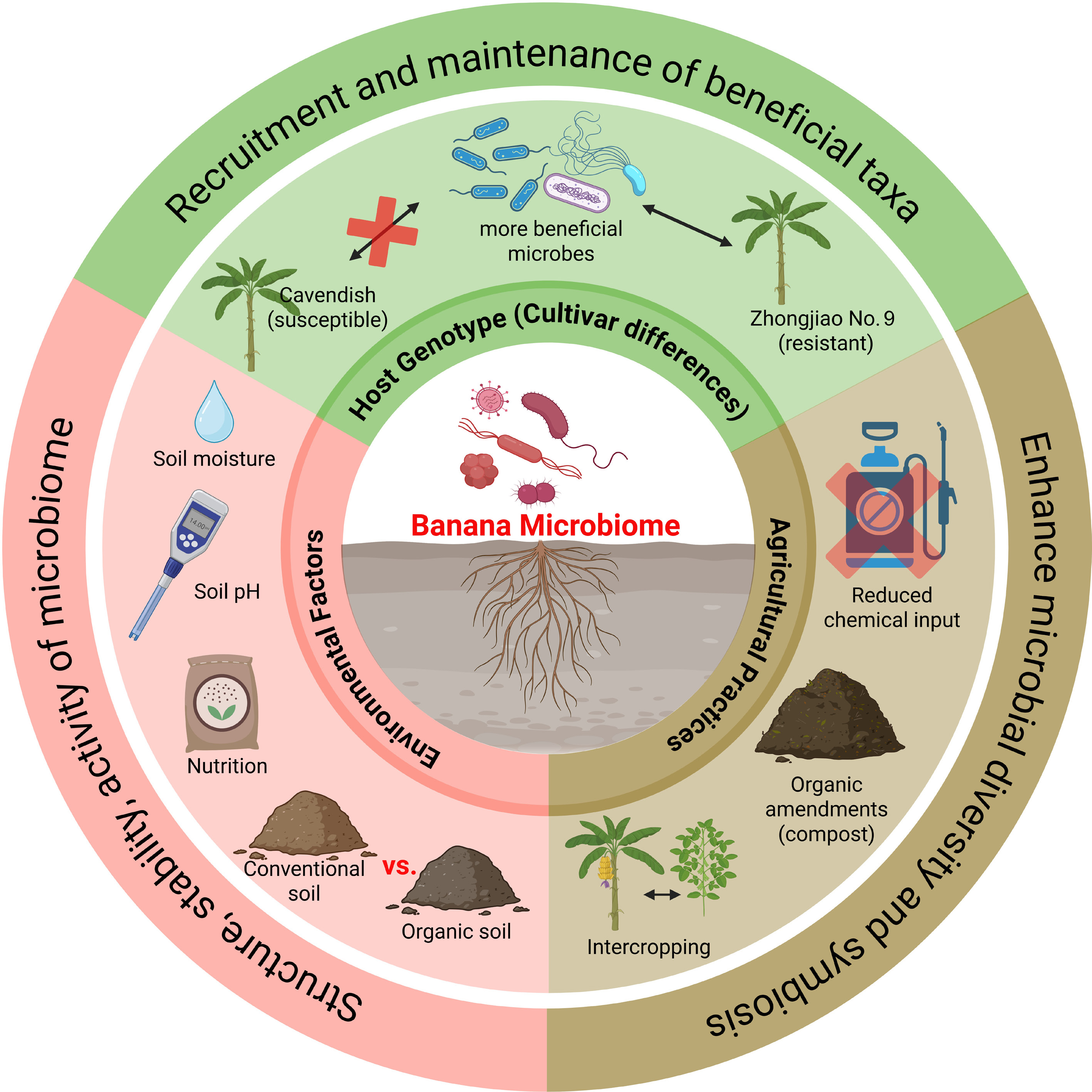 Las comunidades bacterianas y fúngicas de la rizosfera, la endosfera y la filosfera de banano constituyen un aliado para la supresión de Foc R4T, mediante la exclusión competitiva, antibiosis, formación de biopelículas y la inducción de resistencia sistémica adquirida. Se ha documentado que Pseudomonas, Bacillus y Trichoderma; asi como bioinoculantes contribuyen a la resistencia natural a las enfermedades.