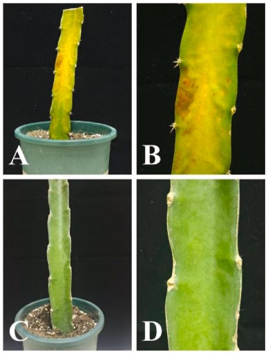 Primer reporte de Diaporthe biconispora que causa el tizón gris del tallo en pitaya (Selenicereus monacanthus) en China