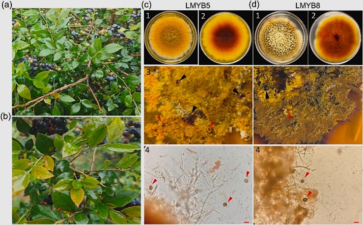 Primer reporte de Botryosphaeria dothidea que causa tizón del tallo en arándano en Michigan, EE.UU.