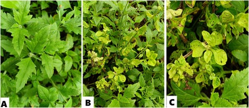 Plantas de Tridax procumbens (Cadillo, hierba de san Juan, etc.) cultivadas mostraron amarillamiento foliar y proliferación de brotes. Las muestras fueron analizadas por diferentes métodos moleculares, los cuales revelaron identidad con cepas de “Candidatus Phytoplasma trifolii”. Este estudio es el primer reporte de una cepa relacionada con “Ca. P. trifolii” que infecta a T. procumbens a nivel mundial.